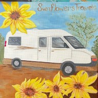 I got up this morning. Had my coffee was sitting outside. I have this one be that just can’t leave me alone. I’m just wishing he will go home today. I’m waiting for Susan and Satyavati to come. I was just sitting there reading and noticed this camper had parked not too far away. I’m sure I know who that is. It wasn’t long before Joyce came walking up. It was so good to see her. She said that Satyavati wasn’t going to come until Sunday and that Susan B. had cut her hand so didn’t think she was going to make it.