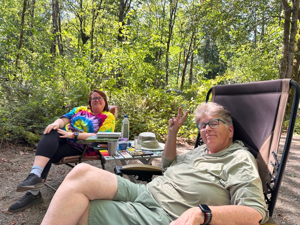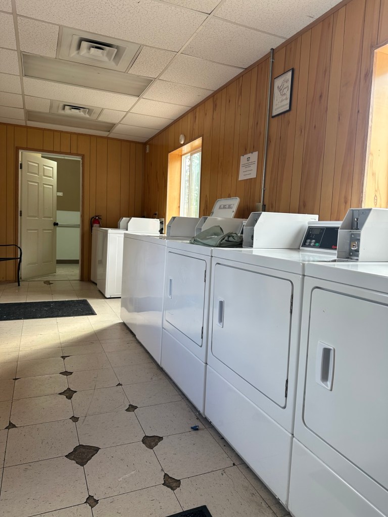 Today it rained I spent the morning inside watching the rain once it light up. I went out to wash clothes. I met a lady from Arizona that was up here taking care of her grandparents 99 and 98 year-old. She was doing their laundry for them her name was Shonna S. We got to visit for a while while our laundry was washing once mine was finished. I said goodbye and I headed back to sunflower. I put my laundry away and then went outside and sat for a while. Then I entered the tanks and filled up my water jugs and filled up the water tank on the RV. I was going to leave tomorrow as my time here would be up I would be heading a little bit more north to another campground With some of my Wander Women friends.
